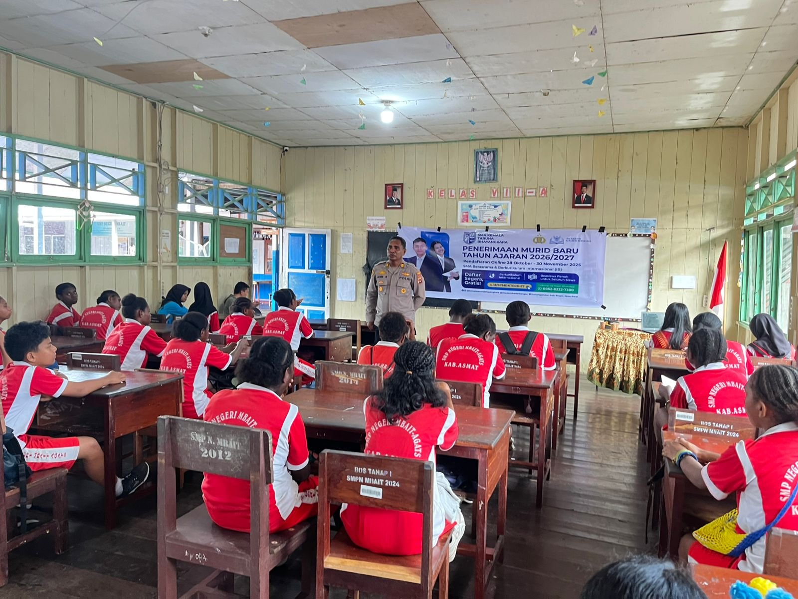 Papua – Kabag SDM Polres Asmat AKP Djhon Philips Rahaten, S.Sos., bersama anggota laksanakan sosialisasi penerimaan SMA Kemala Taruna Bhayangkara, Bertempat Di SMP Negeri Mbait, Jumat (14/11/2025).