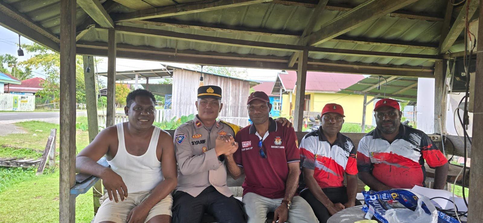 Pada kesempatan tersebut, KBO Binmas Polres Sarmi yang merangkap sebagai Bhabinkamtibmas Kelurahan Mararena, Ipda Syarifuddin, S.Sos., menyambangi Bapak Yosef, Bapak Leon Buiney, serta beberapa warga lainnya.