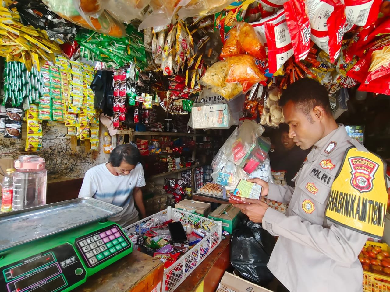 Papua – Dalam upaya menjaga keamanan, ketertiban, serta melindungi konsumen dari peredaran sembako yang tidak layak konsumsi, Bhabinkamtibmas Polres Tolikara melaksanakan kegiatan penyuluhan (Binluh) kepada pedagang sembako di wilayah Distrik Karubaga. Jumat, (12/09/2025).