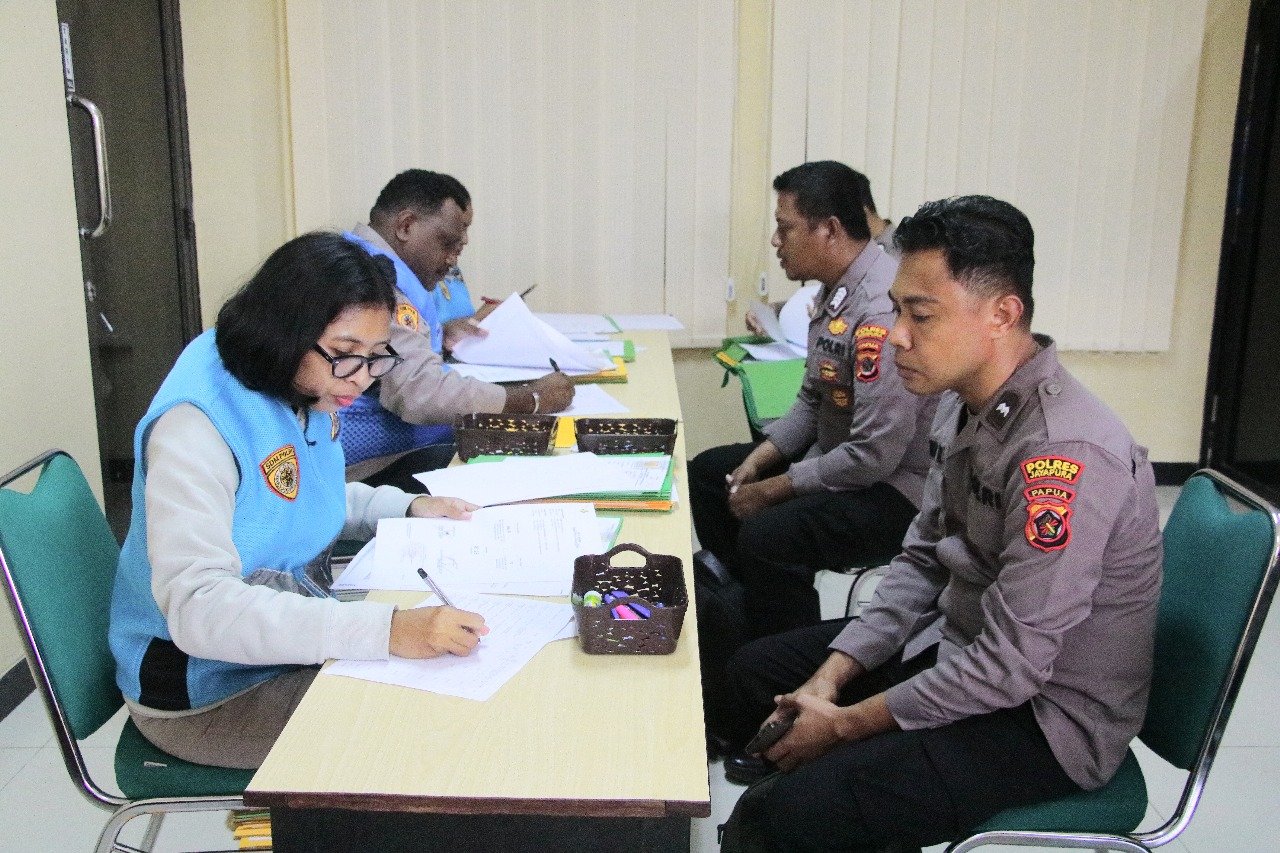 Papua – Biro SDM Polda Papua menggelar Pemeriksaan Administrasi (Rikmin Awal) bagi peserta Seleksi SPPK, Sespimma Angkatan ke-75 dan 76, serta SIP Angkatan ke-55 dan 56 Tahun Anggaran 2026, bertempat di Aula Biro SDM Mapolda Papua Koya Koso, Senin (24/11/2025).