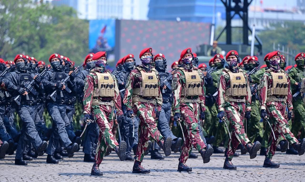 Usai demonstrasi tempur, acara dilanjutkan dengan defile pasukan TNI yang melibatkan 133.000 lebih personel dari berbagai satuan TNI, Polri, serta komponen bangsa lainnya. Barisan tegap dari Polisi Militer, Wanita TNI, Kopassus, Kostrad, Marinir, Paskhas, dan Korps Kadet Indonesia melintas di hadapan Presiden dengan penuh semangat dan kebanggaan. Di udara, formasi pesawat militer membentuk angka “80” sebagai simbol perjalanan delapan dekade pengabdian TNI untuk bangsa dan negara.