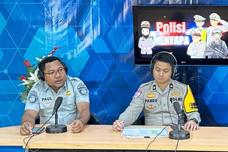 Papua – Kepolisian Daerah Papua melalui Bidang Humas melaksanakan kegiatan dialog interaktif Polisi Menyapa dengan tema “Wujudkan Tertib Berlalu Lintas di Jalan Raya” yang disiarkan secara langsung dari Stasiun LPP RRI Jayapura, Kamis (05/02/2026).