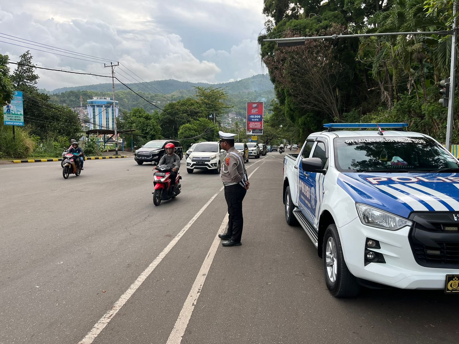 Papua – Personel Direktorat Lalu Lintas (Ditlantas) Polda Papua rutin melaksanakan kegiatan strong point pada pagi dan malam hari di berbagai titik rawan kemacetan dan kecelakaan lalu lintas. Kegiatan ini bertujuan untuk menciptakan keamanan, keselamatan, ketertiban, dan kelancaran (Kamseltibcar) lalu lintas bagi masyarakat yang beraktivitas setiap harinya.