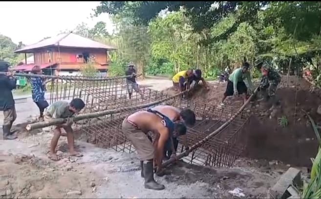 Minahasa Utara – Semangat kebersamaan dan gotong royong kembali ditunjukkan oleh Babinsa bersama masyarakat dan para pekerja, dalam upaya percepatan pembangunan jembatan Perintis Garuda di Kelurahan Rap-Rap, Kecamatan Airmadidi, Kabupaten Minahasa Utara, Sabtu (19/05/2026).