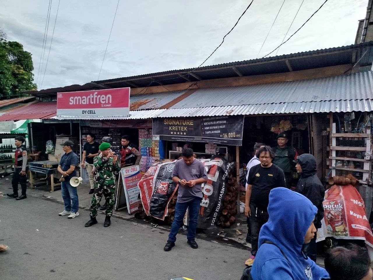 Bitung – Personel TNI dari Koramil 1310-01/Bitung Kodim 1310/Bitung bersama anggota Polres Bitung dan Satpol PP Kota Bitung, turun ke Pasar Girian melakukan penertiban Pedagang Kaki Lima (PKL) yang menempati Fasilitas Umum (Fasum), di Lokasi Pasar Girian Kel. Girian Weru Satu Kec. Girian Kota Bitung, Rabu (18/02/2026).