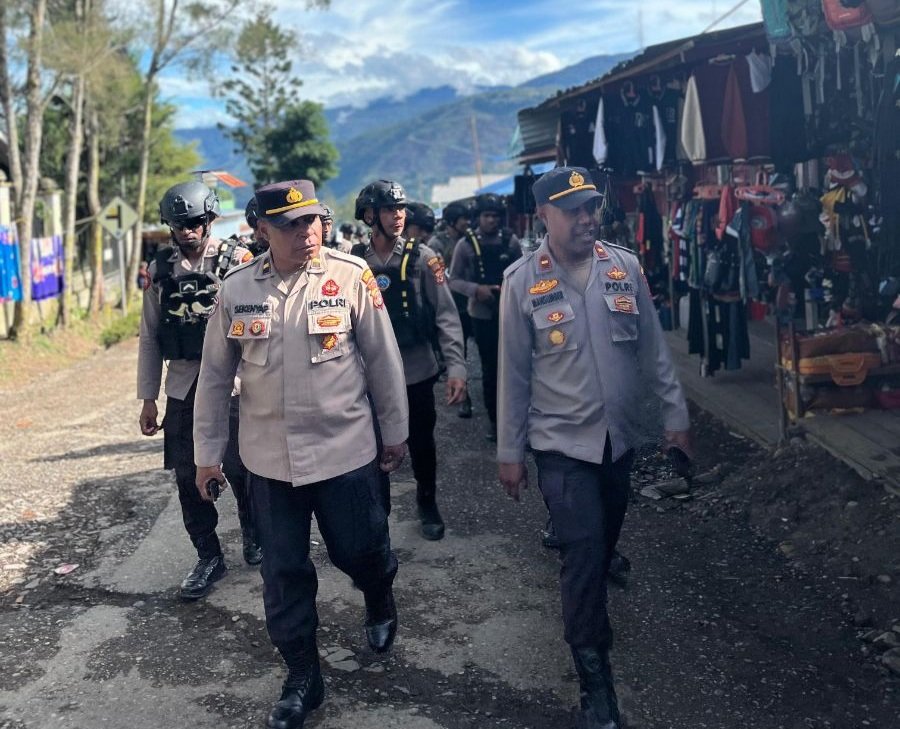 Papua – Polres Tolikara kembali menunjukkan komitmennya dalam memberikan pelayanan terbaik kepada masyarakat dengan melaksanakan patroli jalan kaki di seputaran Kota Karubaga, Jumat (28/08/2025).