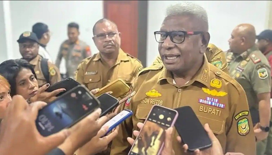 Bupati Mimika Johannes Rettob bersama jajaran pimpinan daerah menggelar pertemuan tertutup dengan para tokoh masyarakat di Gedung Kantor BPKAD Mimika, Jalan Cenderawasih, Papua Tengah.