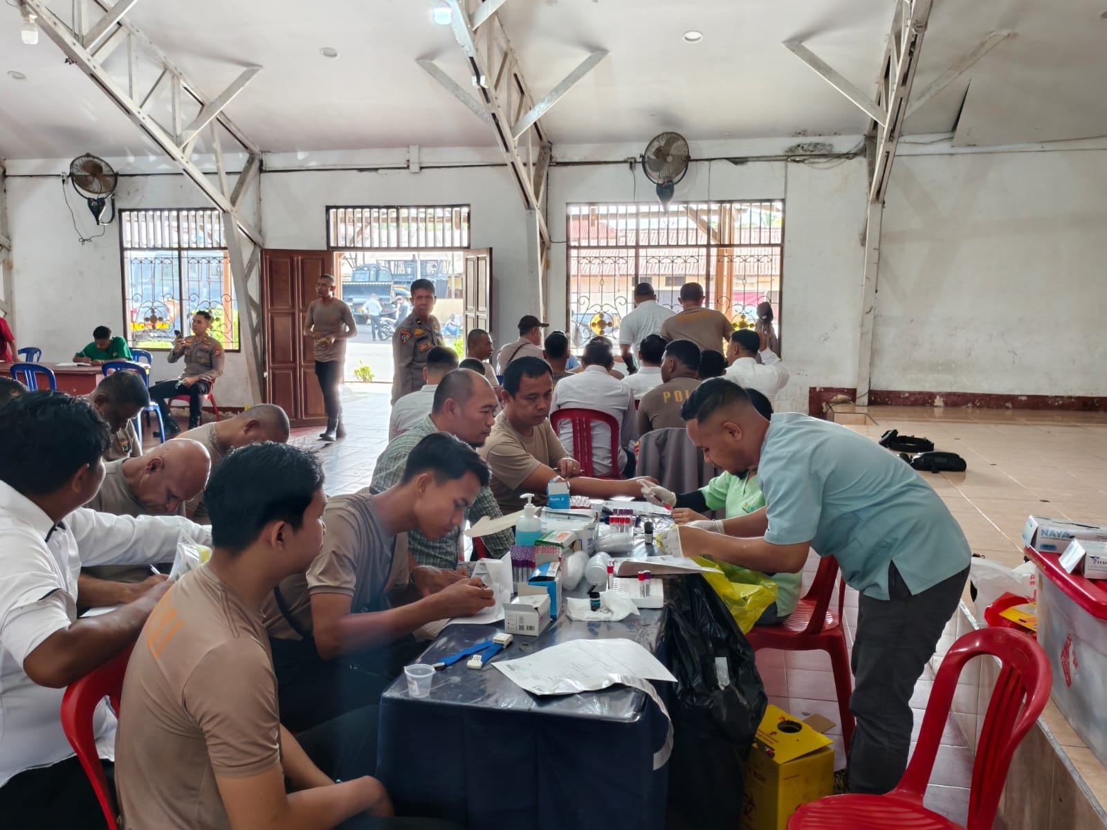 Suasana kegiatan berlangsung tertib dan lancar. Para personel mengikuti setiap tahapan pemeriksaan dengan antusias, menyadari bahwa kesehatan adalah modal utama dalam memberikan pelayanan terbaik kepada masyarakat.