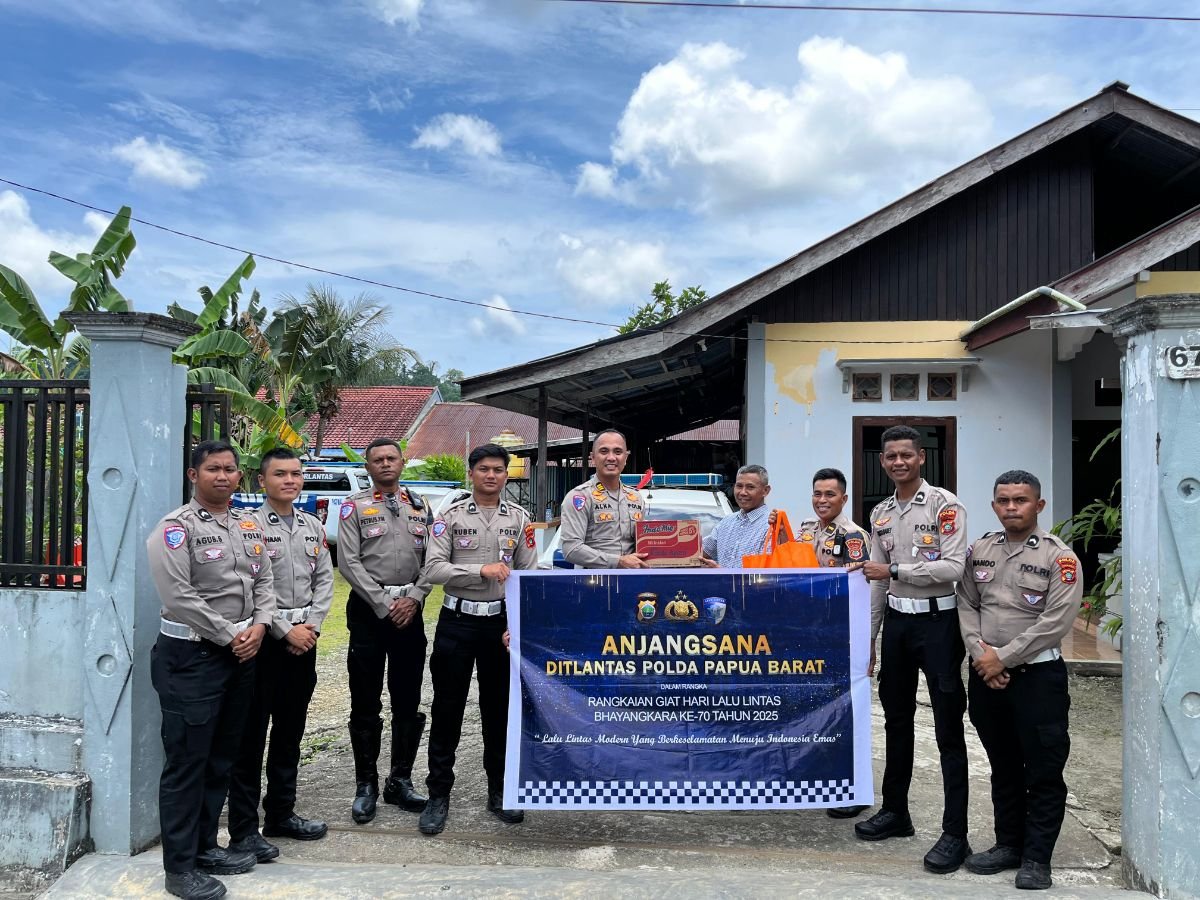 Dalam kegiatan tersebut, rombongan Ditlantas Polda Papua Barat dipimpin oleh sejumlah perwira dan personel, sekaligus menyerahkan bantuan berupa paket sembako sebagai wujud kepedulian dan solidaritas keluarga besar Polri.