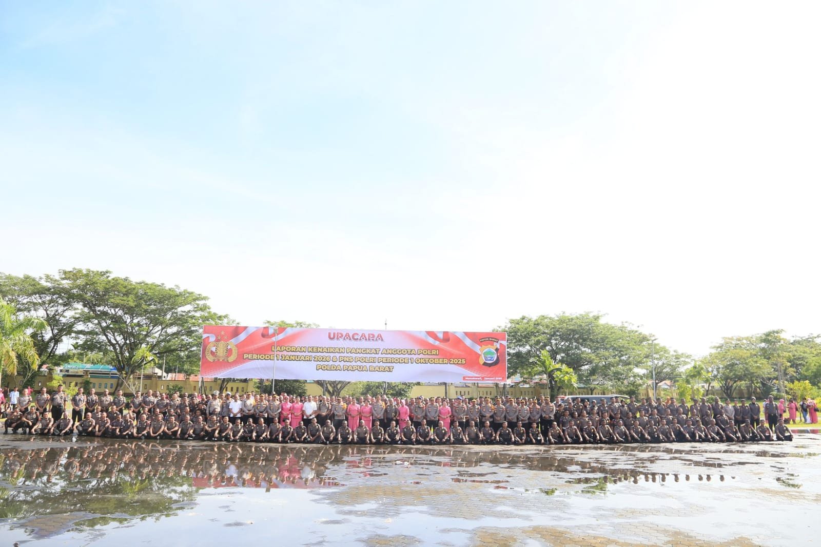 Manokwari – Kepolisian Daerah Papua Barat menggelar Upacara Kenaikan Pangkat Perwira, Bintara, dan Tamtama Polri Periode 1 Januari 2026 serta PNS Polri Periode 1 Oktober 2025, yang berlangsung di Lapangan Mapolda Papua Barat, Rabu (31/12/2025).