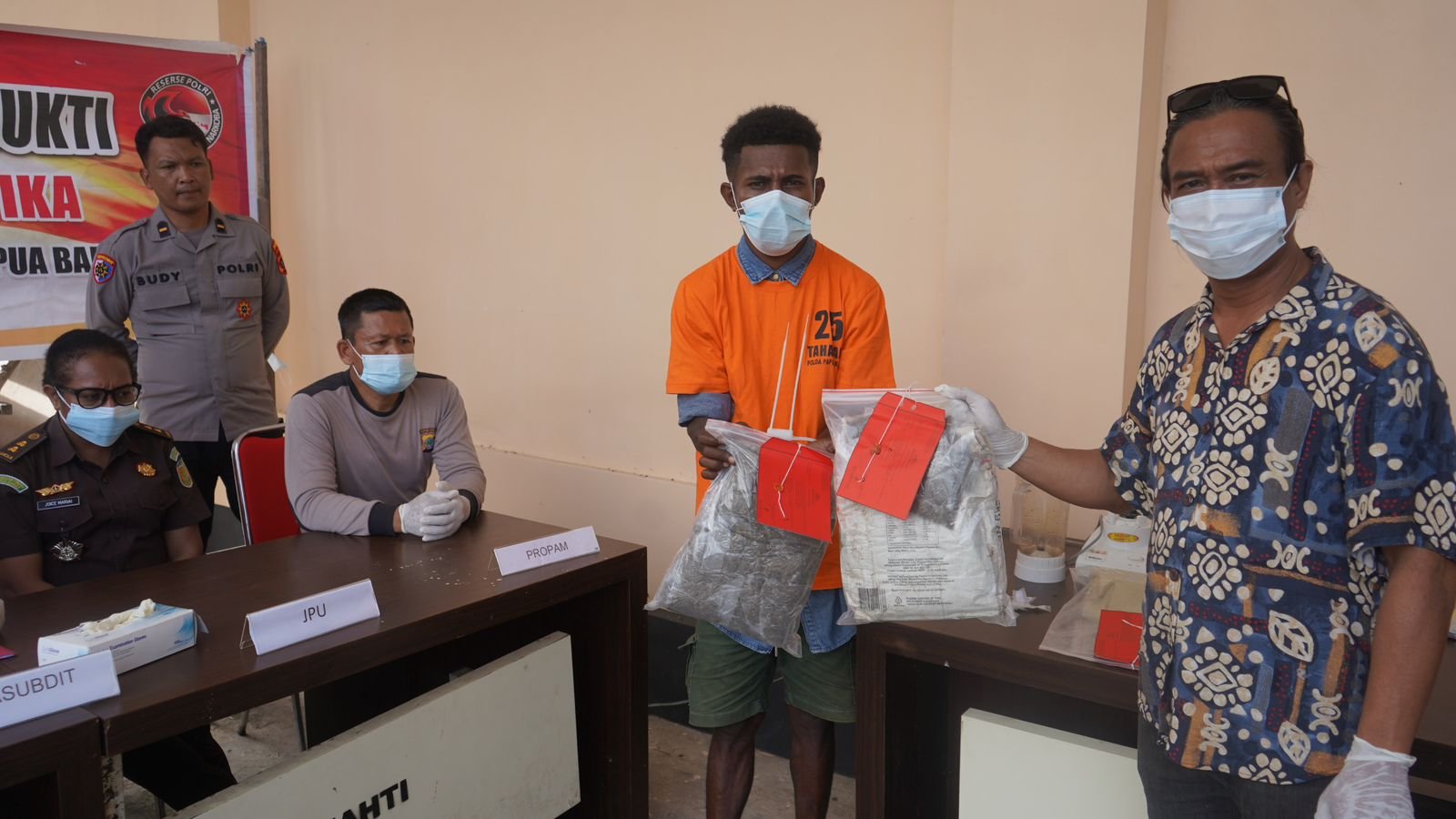 Selanjutnya, dalam perkara narkotika jenis ganja, tersangka P.K diamankan berdasarkan Laporan Polisi Nomor LP/A/29/XII/2025/SPKT.Ditresnarkoba Polda Papua Barat tanggal 12 Desember 2025. Penangkapan dilakukan di Kapal KM. Sinabung yang sedang berlayar di perairan Wasior, Kabupaten Teluk Wondama. Barang bukti yang diamankan berupa 1 karung yang berisi ganja dan 46 plastik bening ukuran besar berisi ganja dengan berat bersih keseluruhan 1.719,37 gram. Setelah penyisihan untuk uji laboratorium, sisa ganja seberat 1.714,67 gram dimusnahkan.