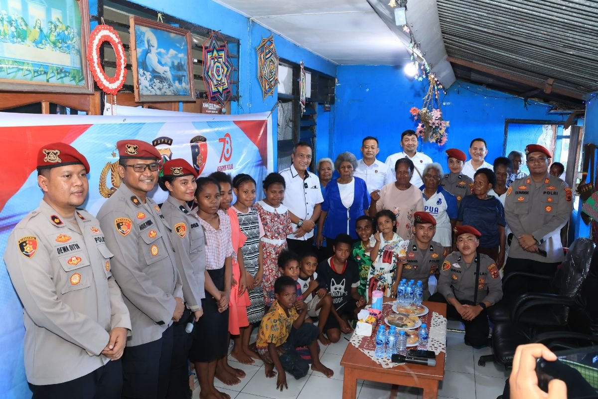 Papua – Dalam rangka memperingati Hari Ulang Tahun (HUT) Reserse ke-78, Kepolisian Daerah Papua bersama Polresta Jayapura Kota melaksanakan kegiatan bakti sosial dengan menyerahkan bantuan paket sembako kepada penghuni Panti Asuhan Air Mata Mama di Dok VIII, Distrik Jayapura Utara, Sabtu (06/12/2025).