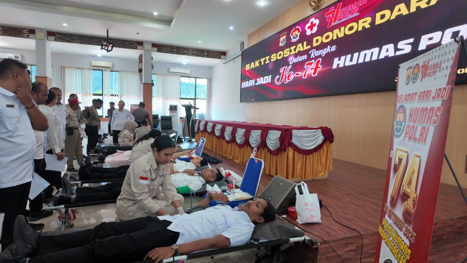 “Momentum HUT Humas Polri ke-74 ini kami maknai sebagai ajang memperkuat semangat pengabdian. Melalui kegiatan donor darah, kita tidak hanya menyebarkan informasi positif, tetapi juga menunjukkan kepedulian nyata kepada sesama,” ujar Kombes Cahyo.