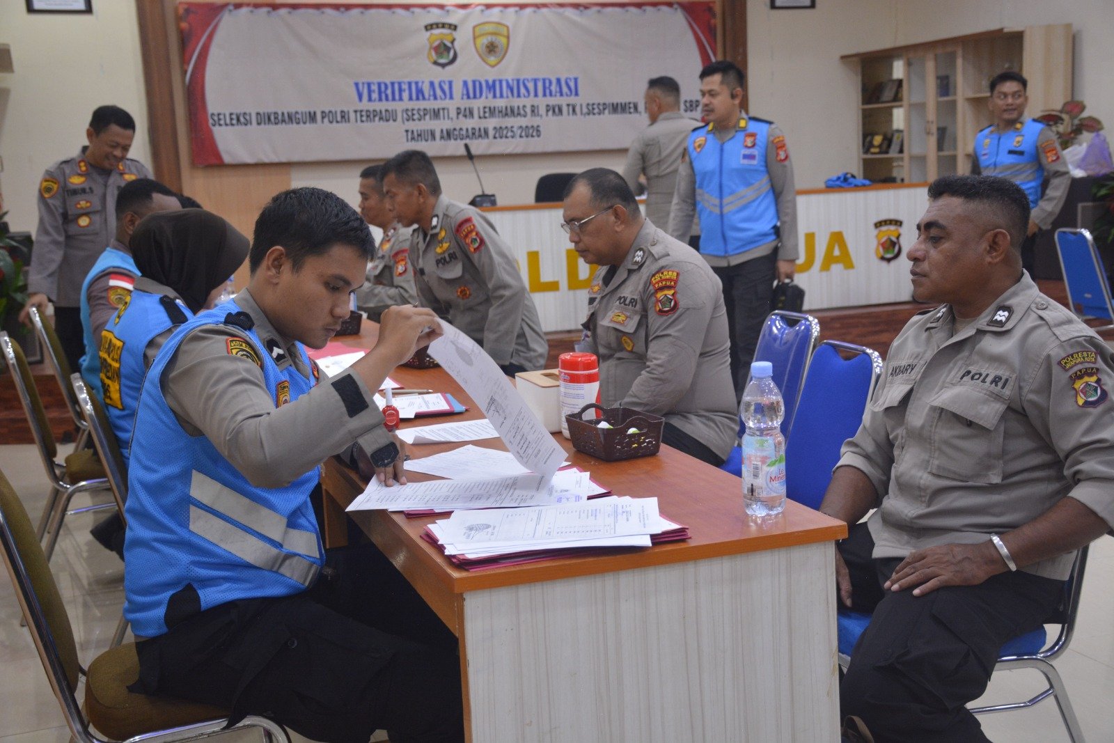 Papua – Kepolisian Daerah Papua melalui Biro Sumber Daya Manusia (SDM) melaksanakan kegiatan Verifikasi Administrasi Seleksi Pendidikan Pengembangan Umum (Dikbangum) Polri Terpadu T.A. 2025/2026 yang mencakup Sespimti, P4N Lemhanas RI, PKN TK I, Sespimmen, PAG, dan SBP. Kegiatan ini berlangsung di Aula Rupatama Polda Papua, Rabu (17/9/2025).