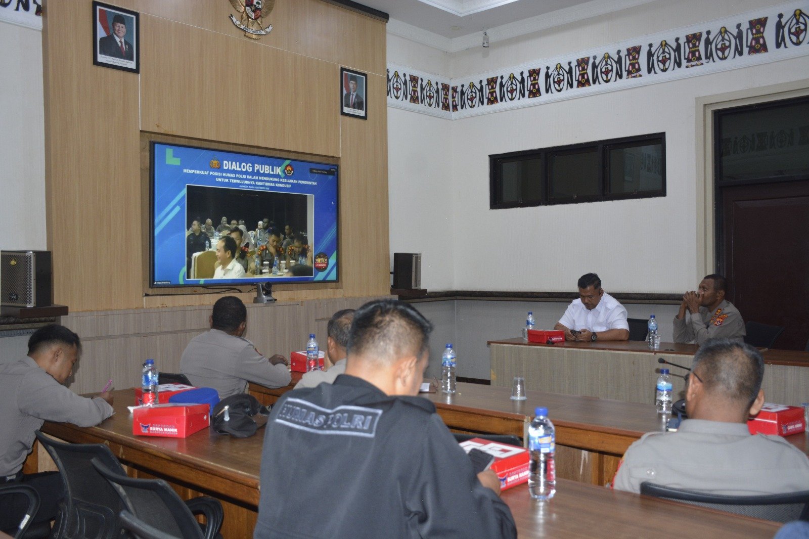 Papua – Divisi Humas Polri menggelar Dialog Penguatan Internal Polri ke-4 dengan tema “Memperkuat Posisi Humas Polri dalam Mendukung Kebijakan Pemerintah untuk Terwujudnya Kamtibmas Kondusif” yang dilaksanakan secara Zoom Meeting dan diikuti oleh seluruh Polda jajaran di Indonesia, termasuk Polda Papua, bertempat di Aula Cenderawasih Polda Papua, Rabu (08/10).