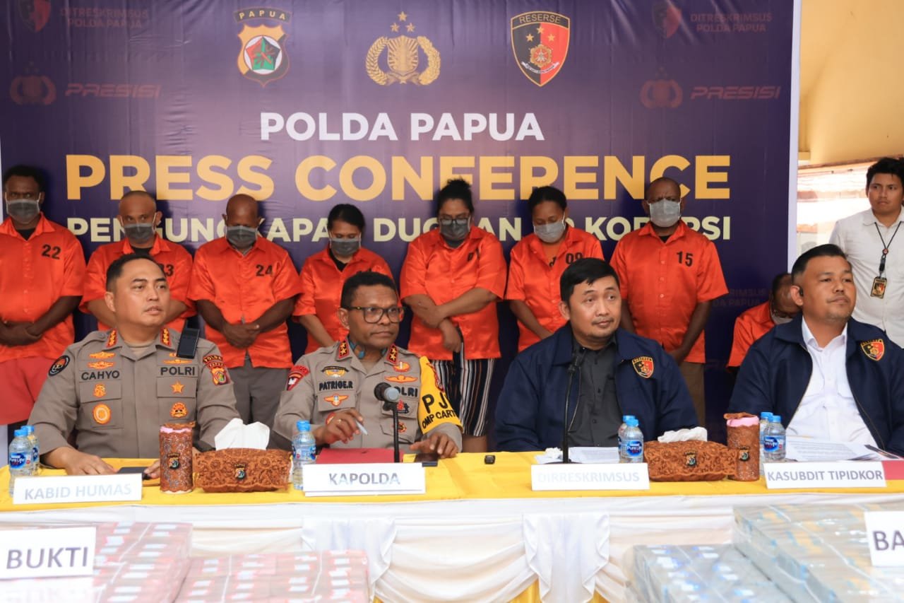 Papua – Kepolisian Daerah Papua melalui Direktorat Reserse Kriminal Khusus menggelar Press Conference terkait pengungkapan perkara dugaan tindak pidana korupsi Dana Desa dan Alokasi Dana Desa Kabupaten Lanny Jaya Tahun Anggaran 2022 sampai dengan 2024 yang mengakibatkan kerugian negara sebesar Rp168.172.682.675, Kamis (25/09).