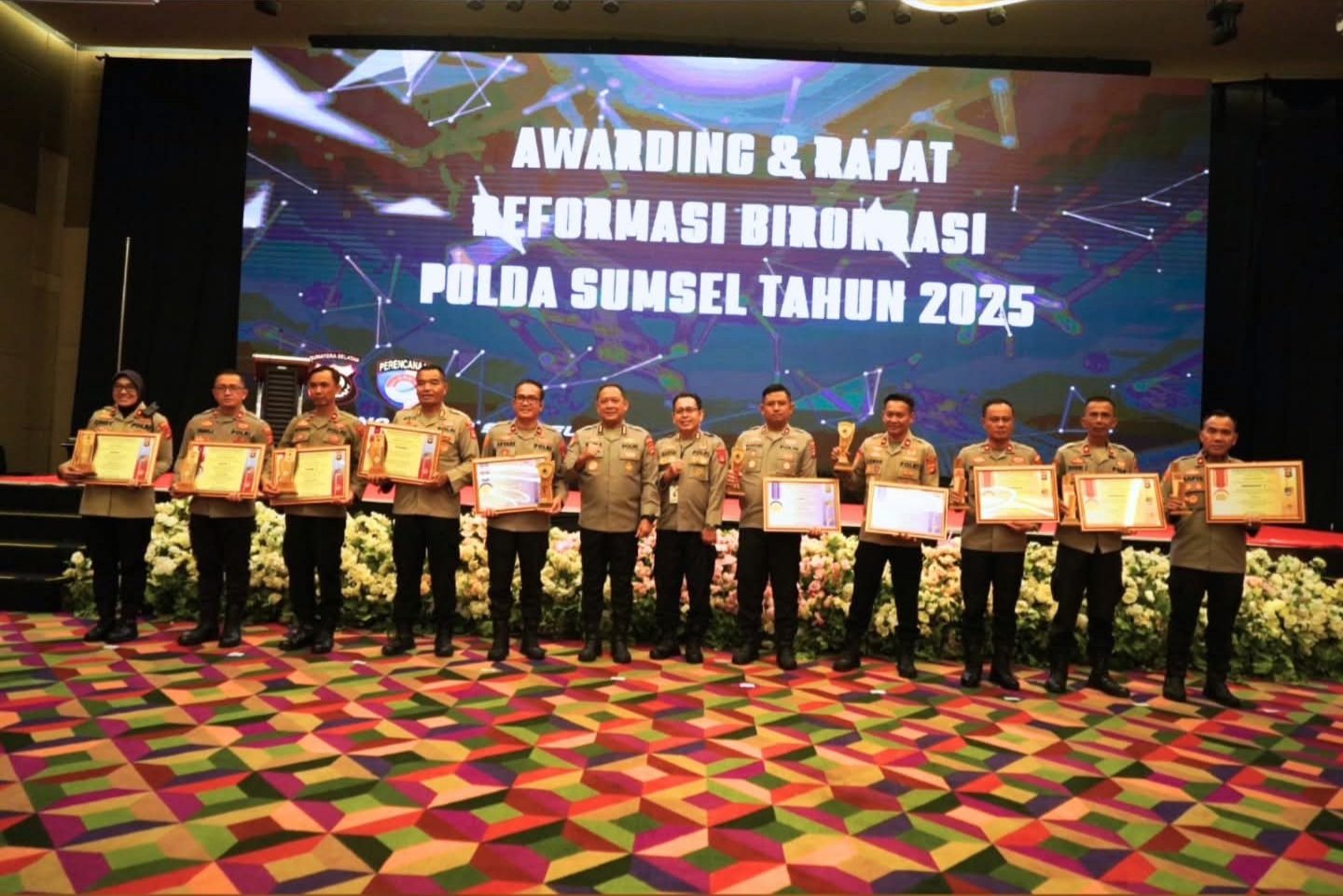 Palembang – Polda Sumsel melalui Biro Rena menggelar kegiatan Awarding dan Rapat Reformasi Birokrasi Polri Tahun 2025 sebagai upaya mempercepat pembangunan Zona Integritas, peningkatan pelayanan publik, serta penguatan manajemen risiko di jajaran Polres. Acara berlangsung pada Selasa, 9 Desember 2025, bertempat di Grand Ballroom Hotel The Zuri, Palembang.