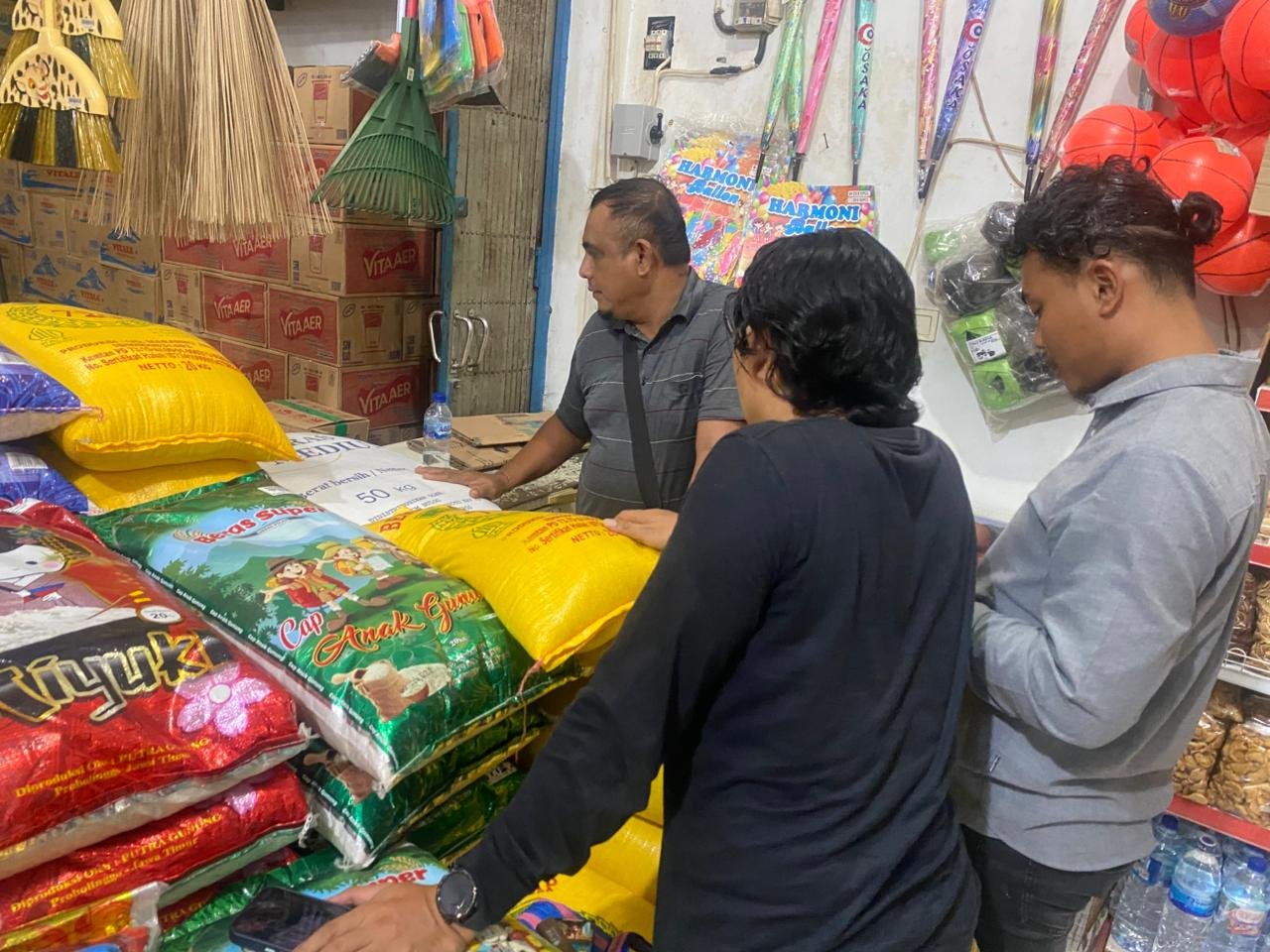 Berdasarkan hasil monitoring di lapangan, harga beras di tingkat pedagang tercatat bervariasi. Beras Bulog dijual dengan harga Rp10.000 per kilogram, beras curah Rp16.000 per kilogram, beras medium Rp15.500 per kilogram, dan beras premium Rp16.800 per kilogram. Sementara itu, beras merah dijual Rp15.000 per kilogram, ketan hitam Rp30.000 per kilogram, dan ketan putih Rp18.000 per kilogram. Pasokan beras dilaporkan cukup dan tidak mengalami kenaikan harga.