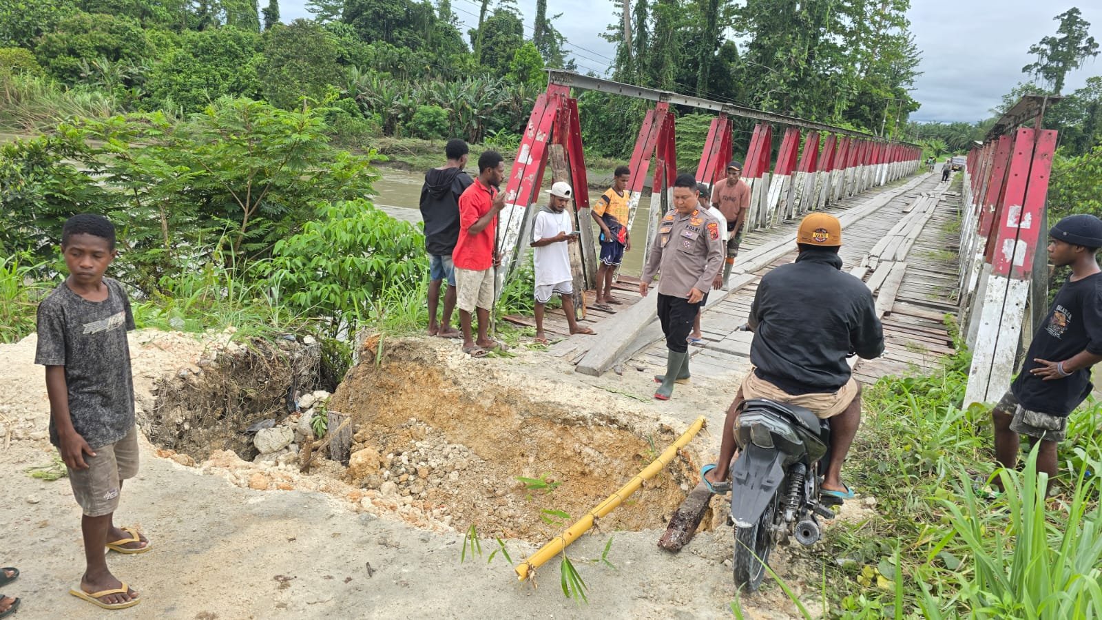 Kondisi ini mengakibatkan pengikisan pondasi di sekitar jembatan penghubung warga hingga memicu tanah amblas, sehingga menimbulkan kekhawatiran akan potensi terputusnya akses utama masyarakat.