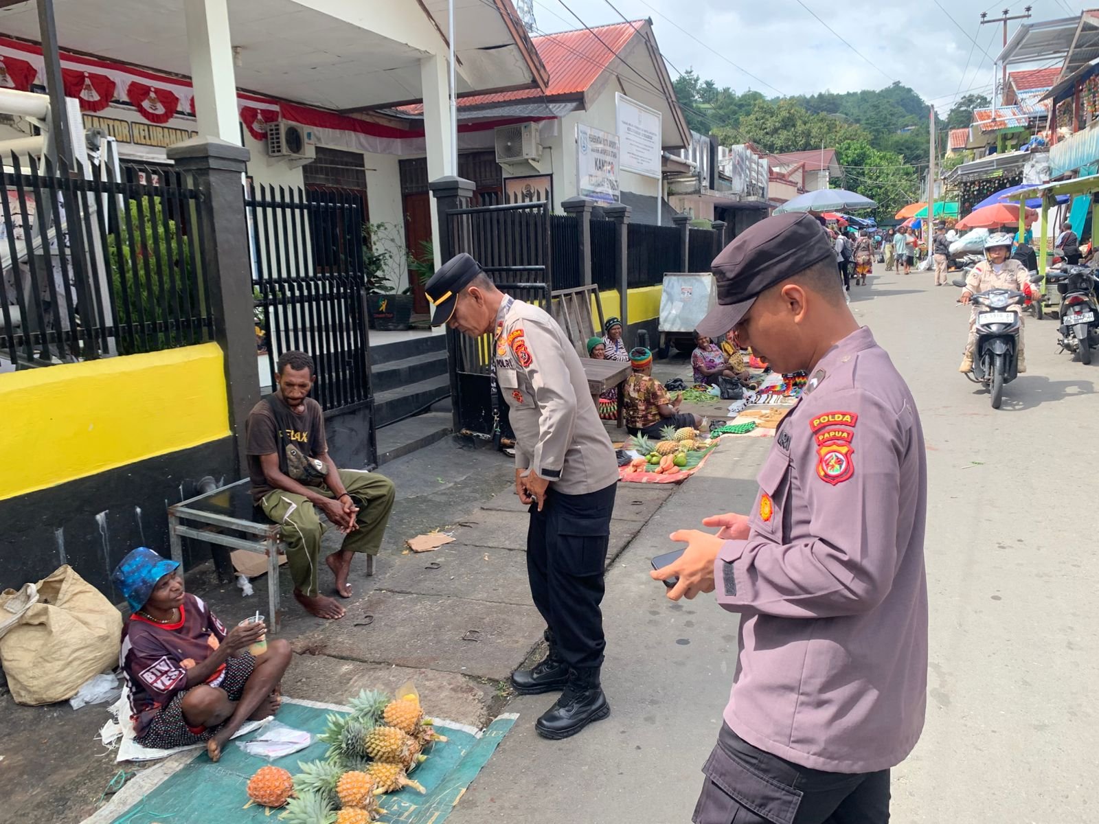 Polri Hadir di Tengah Aktivitas Pasar, Personel Operasi Lilin Cartenz 2025 Sambang Pasar Pagi Paldam