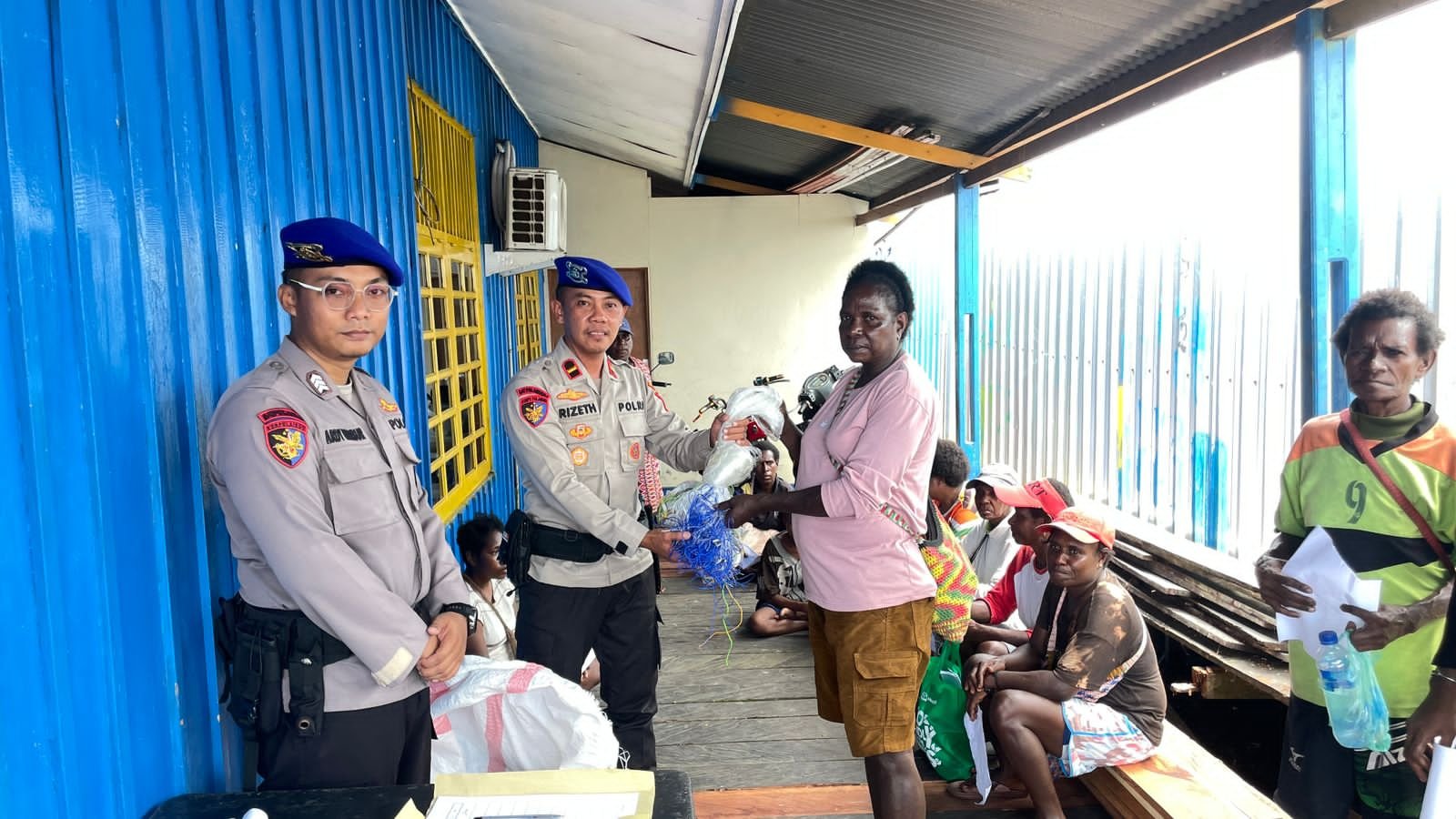 Papua – Kapolres Asmat AKBP Wahyu Basuki, S.I.K., melalui Kasat Polairud Ipda Rizeth Sion Paotonan, S.H., berikan bantuan jaring kepada kelompok nelayan di Kampung Yepem Dan Kampung Syuru, Bertempat Di Mako Sat Polairud Polres Asmat, Jumat (30/10/2025).