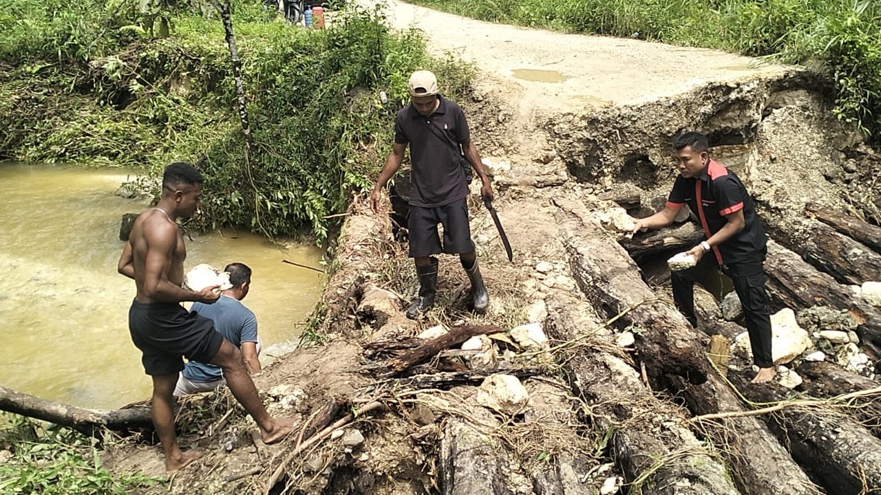 Personil Polsek Demta dan warga bahu-membahu menata material, memperkuat pijakan jembatan, serta membuka jalur alternatif sementara agar pejalan kaki dan kendaraan roda dua tetap dapat melintas. Kehadiran Kapolsek dan personil turut memberikan rasa aman sekaligus memastikan proses perbaikan berlangsung tertib.
