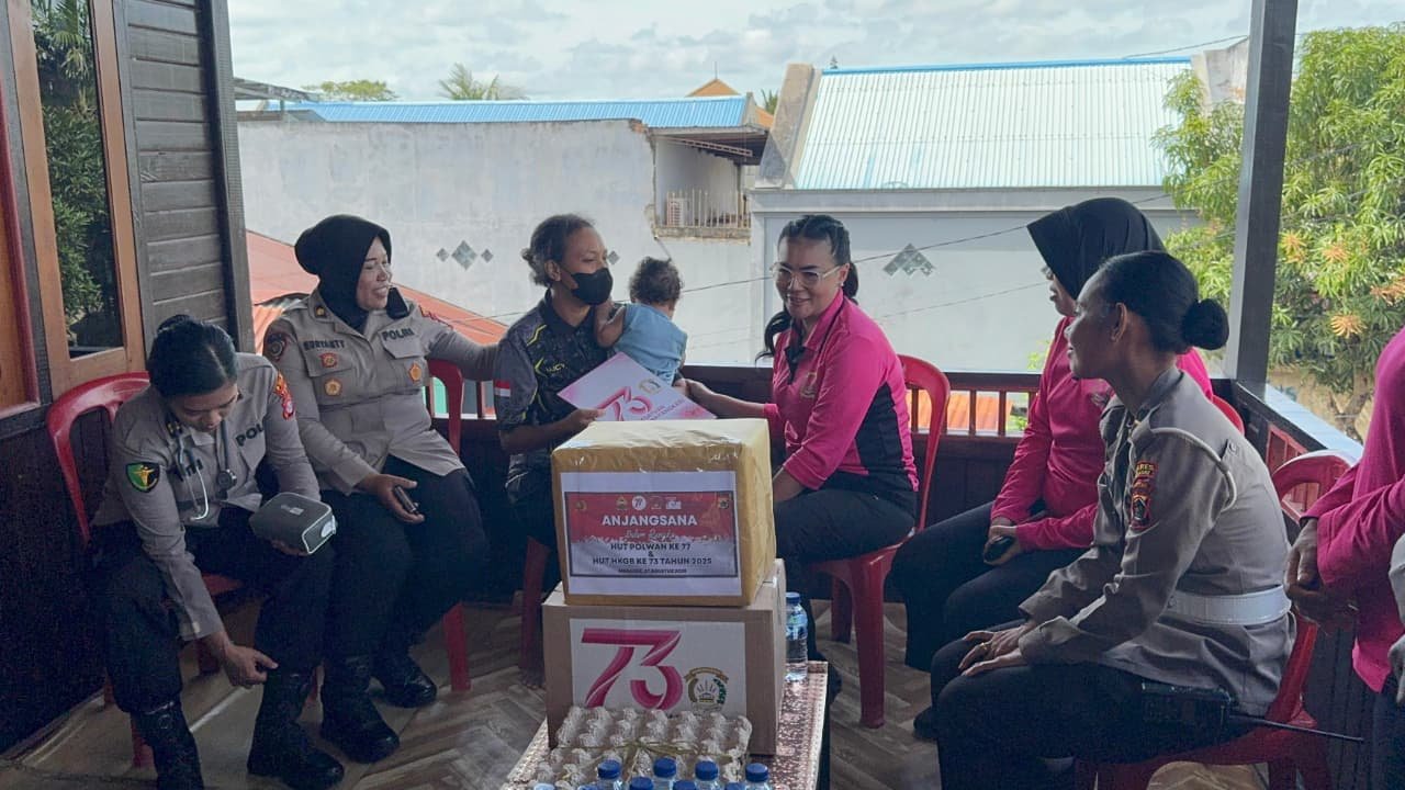 Papua – Personel Polisi Wanita (Polwan) Polres Merauke bersama anggota Bhayangkari Cabang Merauke melaksanakan kegiatan Anjangsana dan Pemeriksaan Kesehatan kepada Purnawirawan, Warakawuri, serta personel Polwan yang sedang sakit, dalam rangka memperingati Hari Ulang Tahun (HUT) Polwan ke-77 dan HUT Hari Kesatuan Gerak Bhayangkari (HKGB) ke-73 Tahun 2025, pada Rabu (27/08/25).