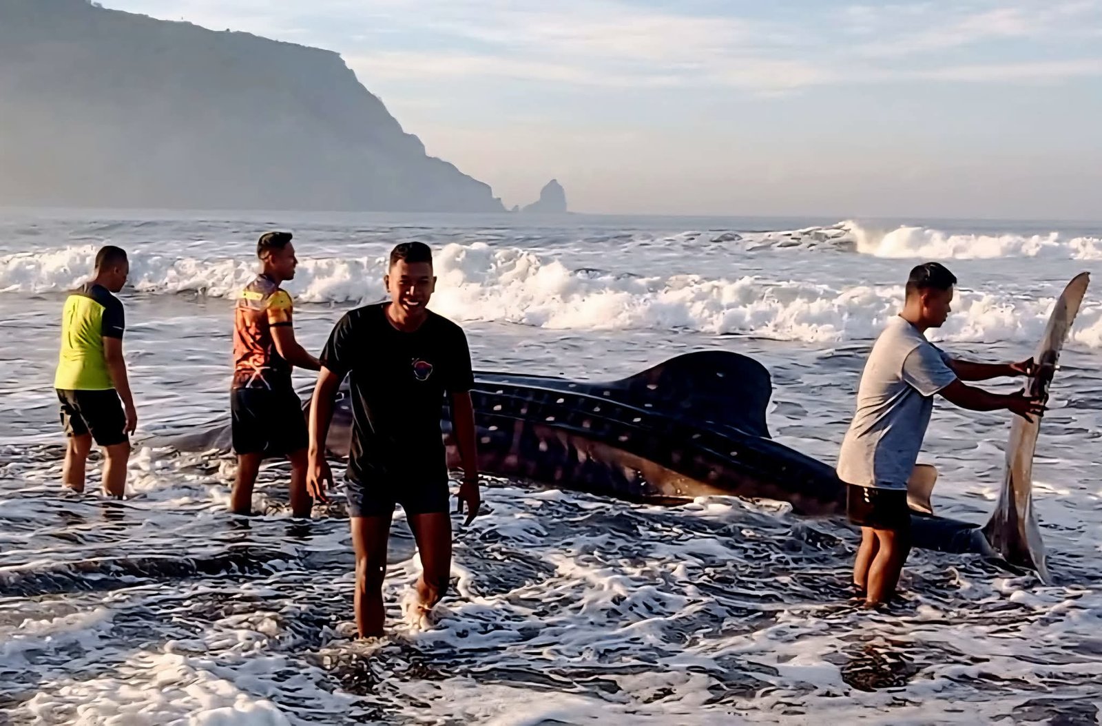 Namun, sekitar pukul 08.30 WIB, Hiu paus itu kembali terdampar setelah dihantam ombak yang kuat. Personel Satgasmar Pulau Nusa Barung kembali mendekat untuk mengevakuasi Hiu tersebut, dan beruntung Hiu tersebut berusaha sendiri untuk kembali ke laut dan berhasil melakukannya.