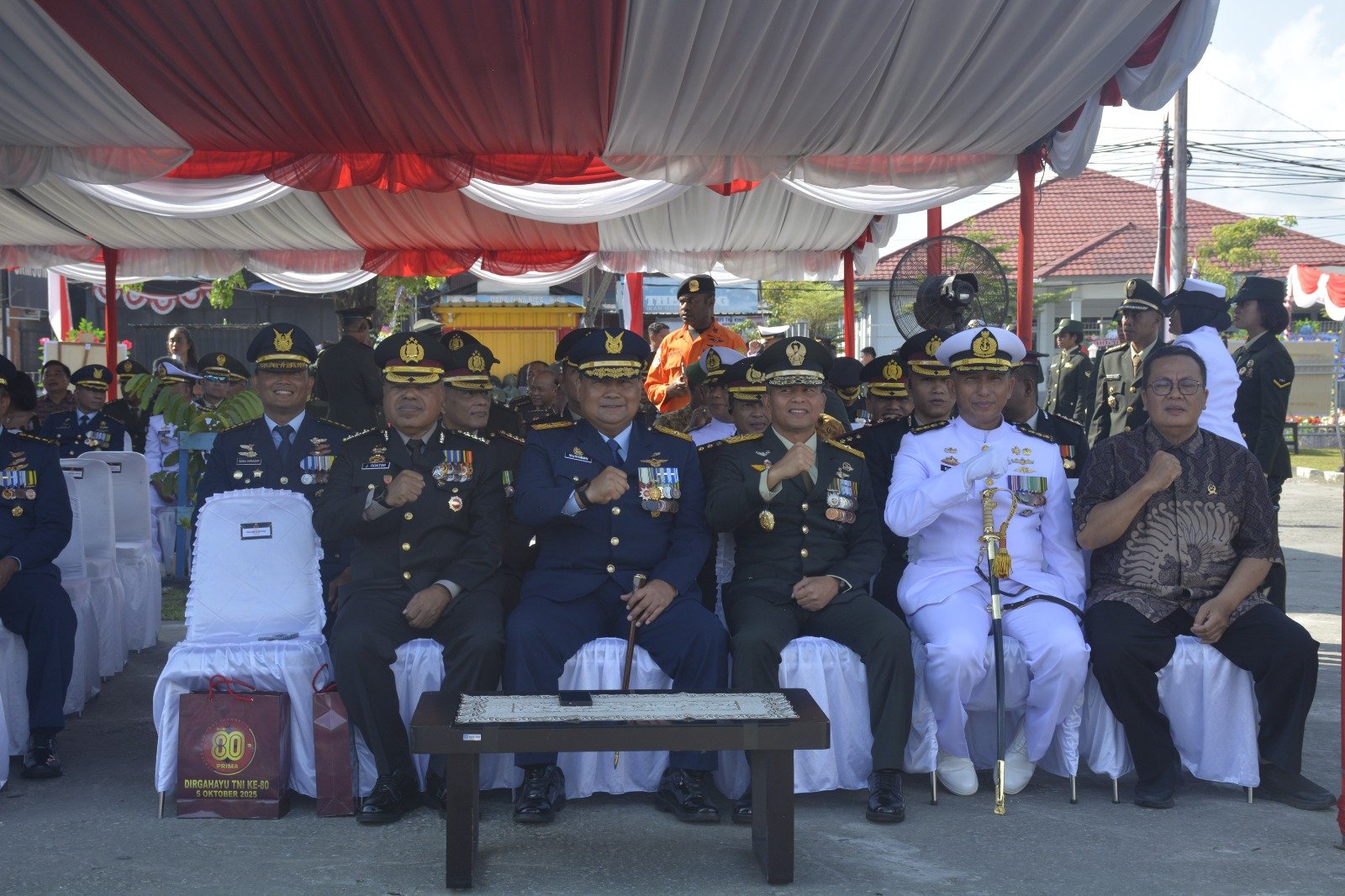 Upacara HUT TNI ke-80 tahun ini mengusung tema “TNI Prima – TNI Rakyat – Indonesia Maju”, yang merefleksikan semangat profesionalisme, responsivitas, dan kemanunggalan TNI bersama rakyat dalam menjaga keutuhan dan kedaulatan Negara Kesatuan Republik Indonesia.
