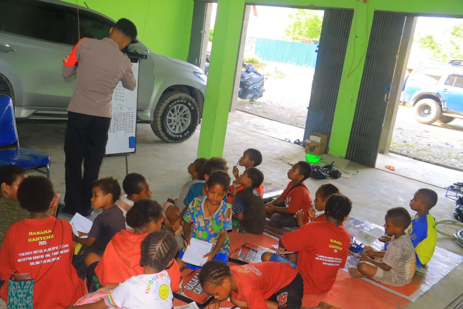 Dengan pendekatan yang ramah serta metode belajar sambil bermain, anak-anak terlihat antusias dan gembira mengikuti setiap arahan dari personel. Suasana belajar pun berlangsung hangat dan penuh keceriaan, seolah-olah mereka sedang belajar bersama kakak sendiri.