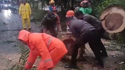 Bitung – Hujan deras di sertai angin kencang sehingga mengakibatkan terjadi pohon tumbang di Dua…