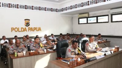 Papua – Kapolri Jenderal Pol. Drs. Listyo Sigit Prabowo, M.Si., memberikan arahan kepada seluruh jajaran…