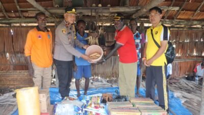 Polres Asmat Serahkan Bantuan Sembako di Kampung Mbait