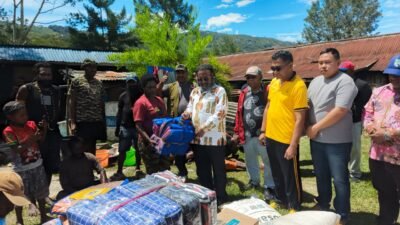 Papua – Polres Tolikara mengawal penyaluran bantuan (sembako) bagi para pengungsi korban kebakaran di wilayah…