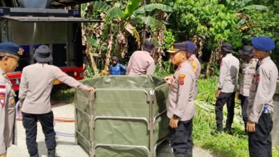 Papua – Satuan Brimob Polda Papua melaksanakan layanan bantuan air bersih layak konsumsi menggunakan Mobil…