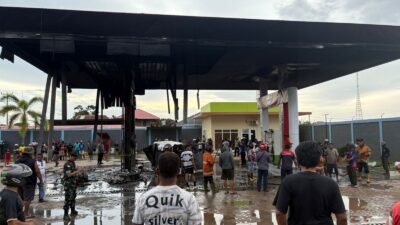 Papua – Personel Satuan Samapta Polres Merauke mengerahkan satu unit mobil water canon untuk membantu…