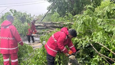 Tim SAR Ditsamapta Polda Papua Tangani Pohon Tumbang di Tanjakan Pospol Lantas Vihara Skeylen