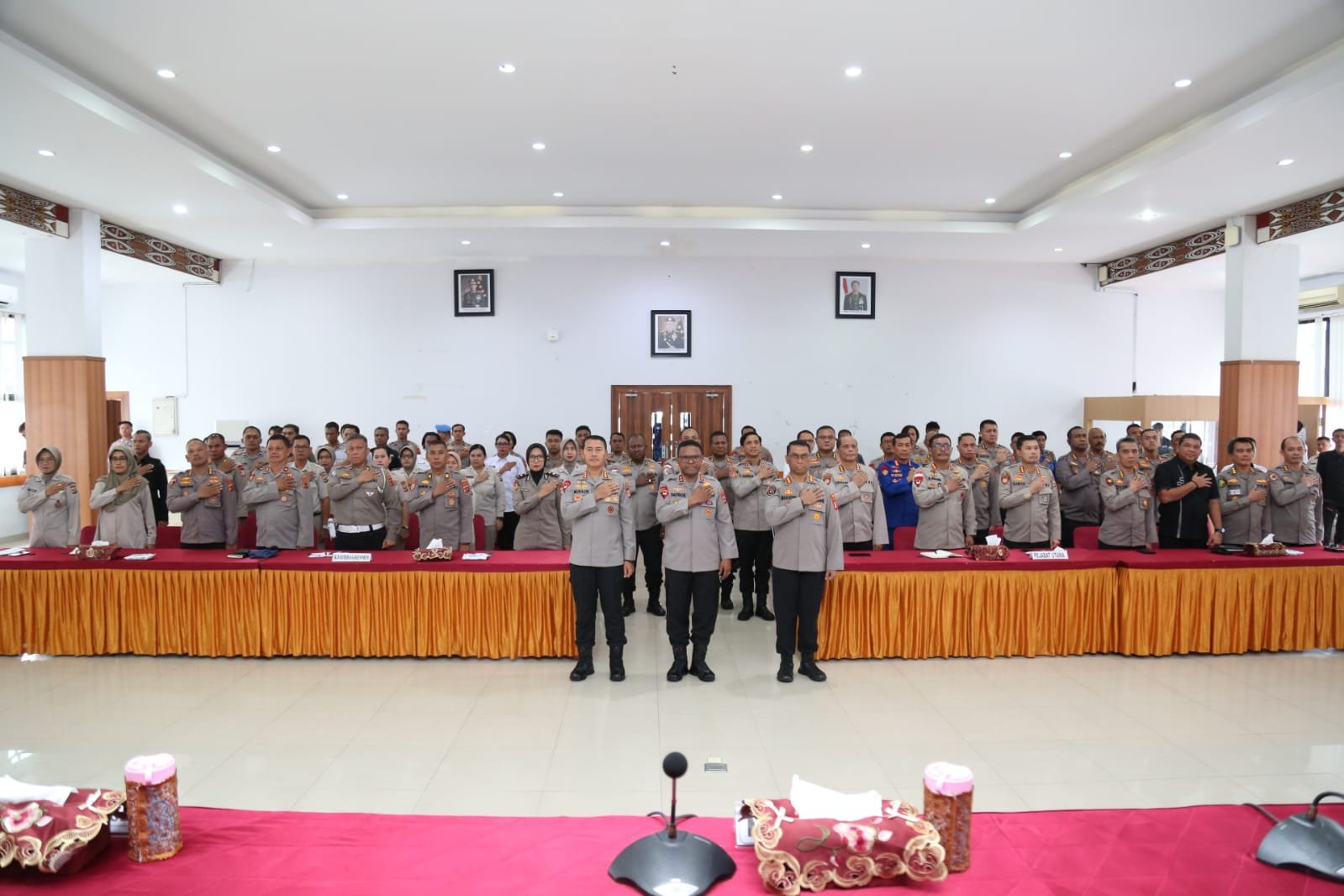 Kegiatan tersebut dipimpin langsung oleh Kapolda Papua, Irjen Pol. Patrige R. Renwarin, S.H., M.Si dan dihadiri oleh Wakapolda Papua, Kombes Pol. Muhajir, S.I.K., M.H, PJU Polda Papua, auditor Itwasda, Kapolres jajaran, serta personel Polda Papua, baik secara langsung maupun melalui sarana video conference.