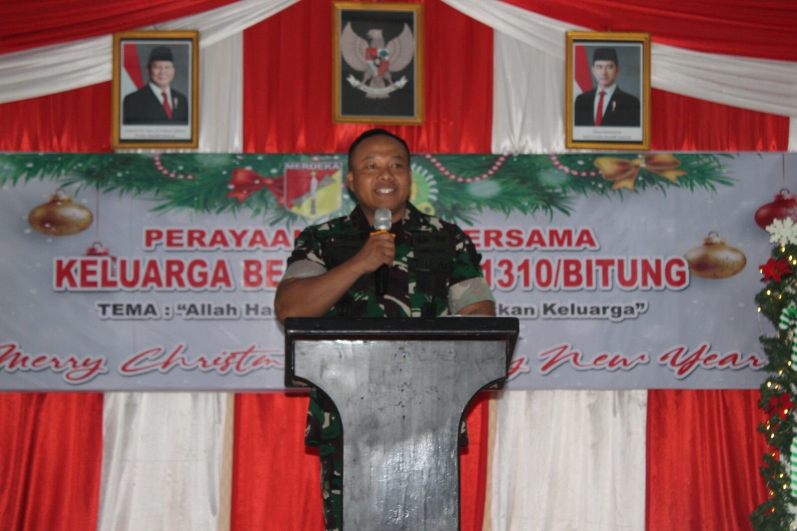 Ibadah Perayaan Natal Bersama Keluarga Besar Kodim 1310/Bitung, dihadiri Dandim 1310/Bitung, Letkol Inf Dewa Made DJ, Pabung Kab. Minut, Mayor Inf Saul Malangkas, Para Pejabat Perwira Seksi, Para Danramil jajaran, Anggota, PNS dan Ibu – Ibu Persit KCK Cabang LXII Kodim 1310/Bitung serta Keluarga Besar Kodim 1310/Bitung.