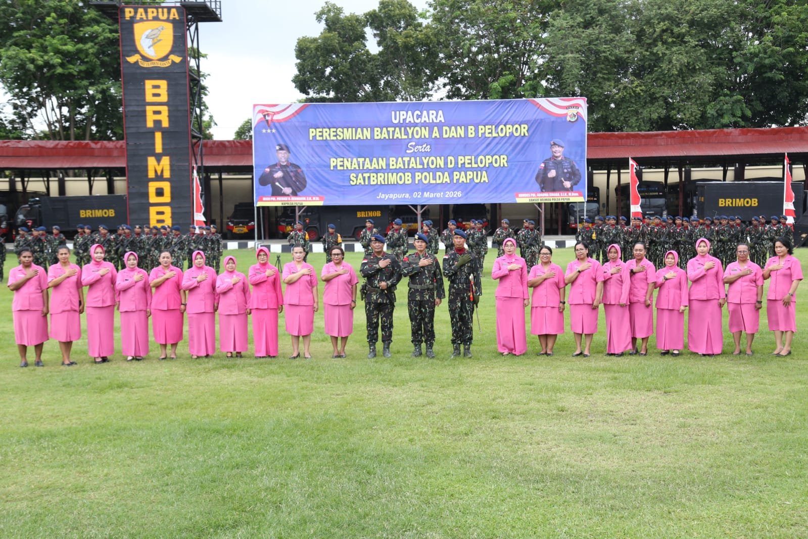 Papua – Kepolisian Daerah Papua menggelar upacara peresmian Batalyon A dan B Pelopor serta penataan kembali Batalyon D Pelopor Satuan Brimob Polda Papua yang dilaksanakan di Mako Brimob Polda Papua, Senin (2/3/2026).