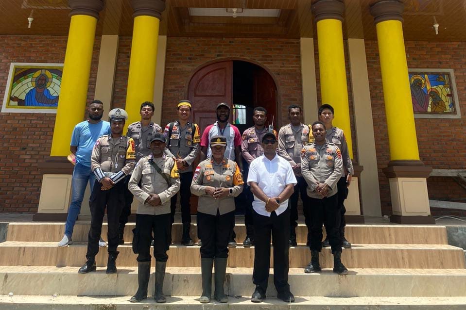 Wujud Kepedulian Polri, Bantuan Seng Diserahkan ke Gereja Katolik Kobakma