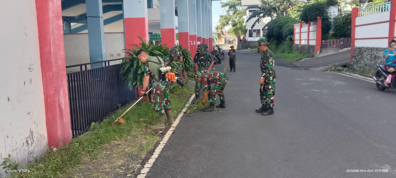 Bitung – Wujud kepedulian terhadap kebersihan lingkungan serta mendukung fasilitas umum yang layak bagi masyarakat, dalam rangka Gerakan Indonesia Asri, personel Kodim 1310/Bitung bersama prajurit Yonif TP 916/BS, melaksanakan kegiatan kerja bakti pembersihan di area Stadion Duasudara, Kel. Manembo Nembo Tengah, Kec. Matuari, Kota Bitung, Sabtu, (04/04/2026).